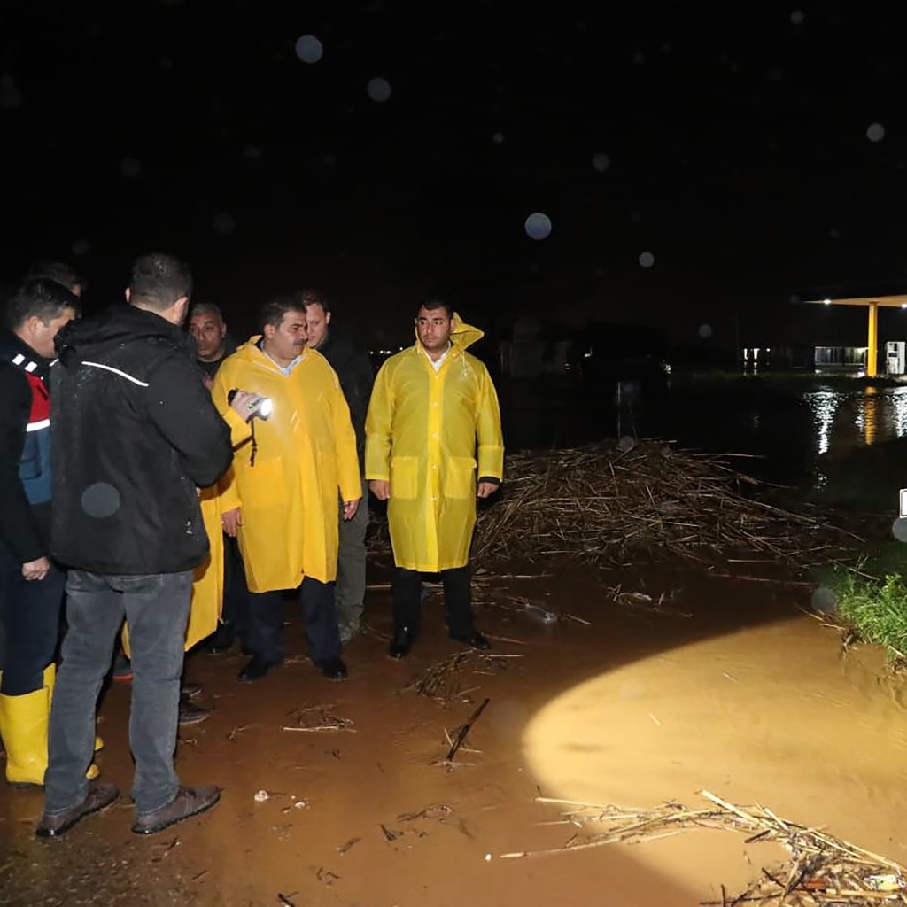 Mahalle Muhtarı Vehbi Koç ve vatandaşlarla görüşen Başkan Canpolat ve Kaymakam Şahin, su seviyesinin yükseldiği ve taşkın yaşanan bölgelerde inceleme yaptı.