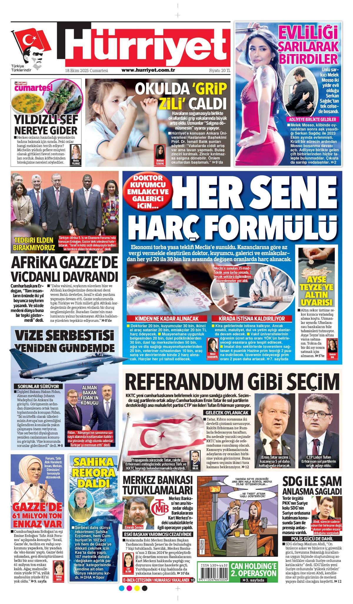 Hürriyet Gazetesi 18 Ekim 2025 Günü Manşeti