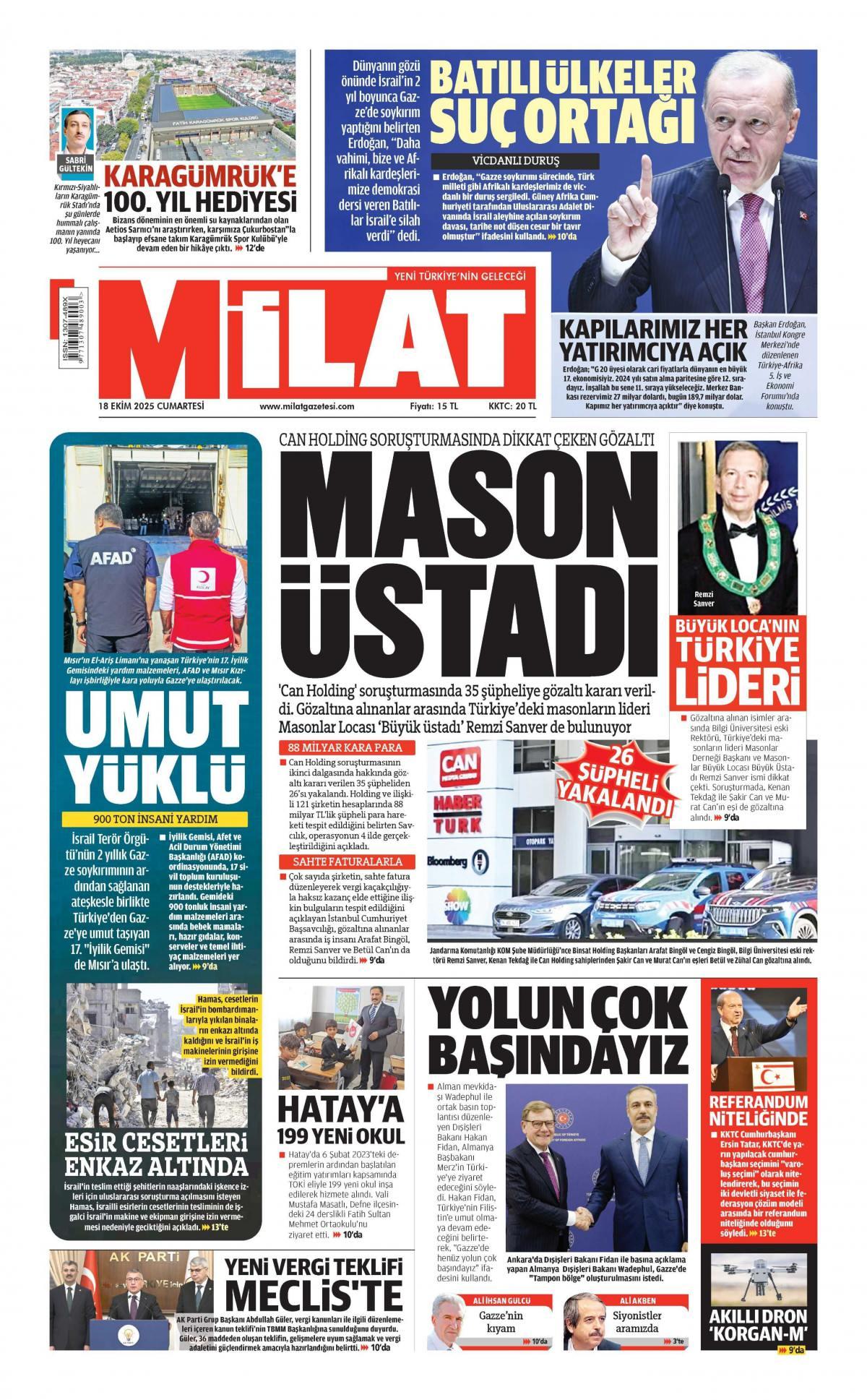 Milat Gazetesi 18 Ekim 2025 Günü Manşeti