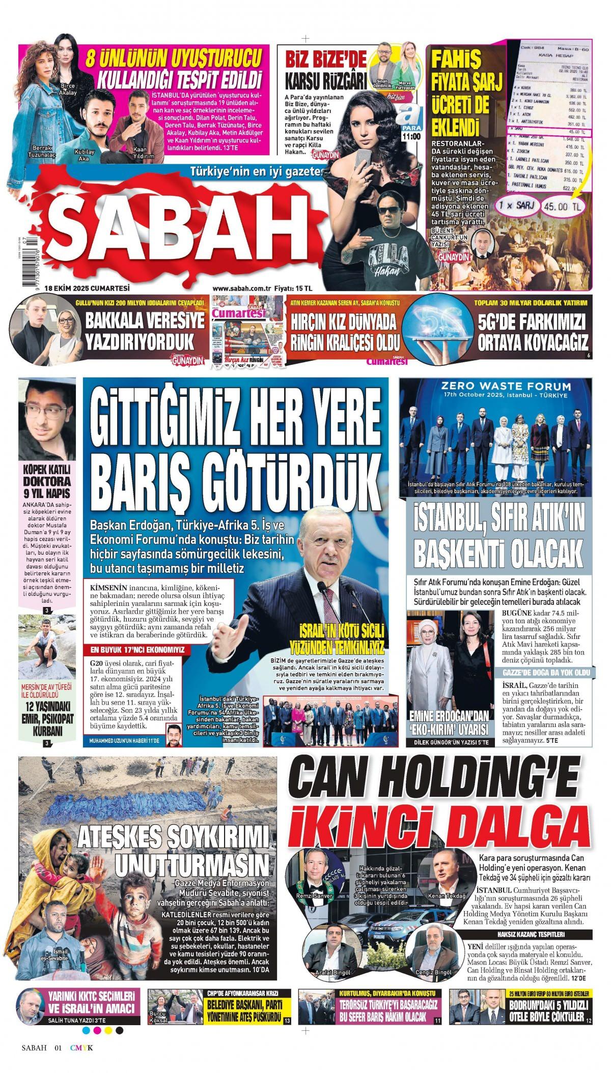 Sabah Gazetesi 18 Ekim 2025 Günü Manşeti