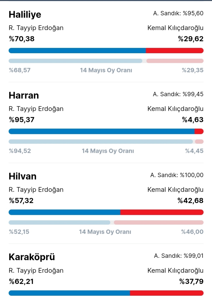 Haberler SEÇİM ANALİZ İşte Şanlıurfa İlçeleri Oy Dağılımı; Akçakale Rekor Kırdı!”İşte Şanlıurfa İlçeleri Oy Dağılımı; Akçakale Rekor Kırdı!” 28 Mayıs 2023, 19:46 yayınlandı 28 Mayıs 2023, 22:54 güncellendi 0dk, 5sn + - Şanlıurfa’da İlçelere göre oy dağılımda %92 ile ak parti Diyen Akçakale Rekor Kırdı! İşte Şanlıurfa İlçeleri Oy Dağılımı; Akçakale Rekor Kırdı!” Yorum Yap Paylaş Haberle ilgili daha fazlası:# #urfa # manset # Şanlıurfa # üst