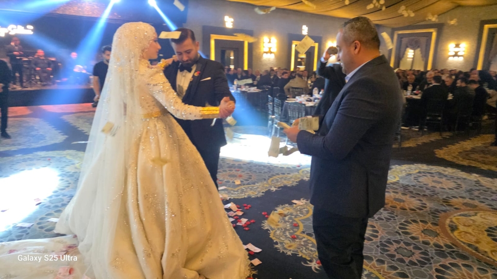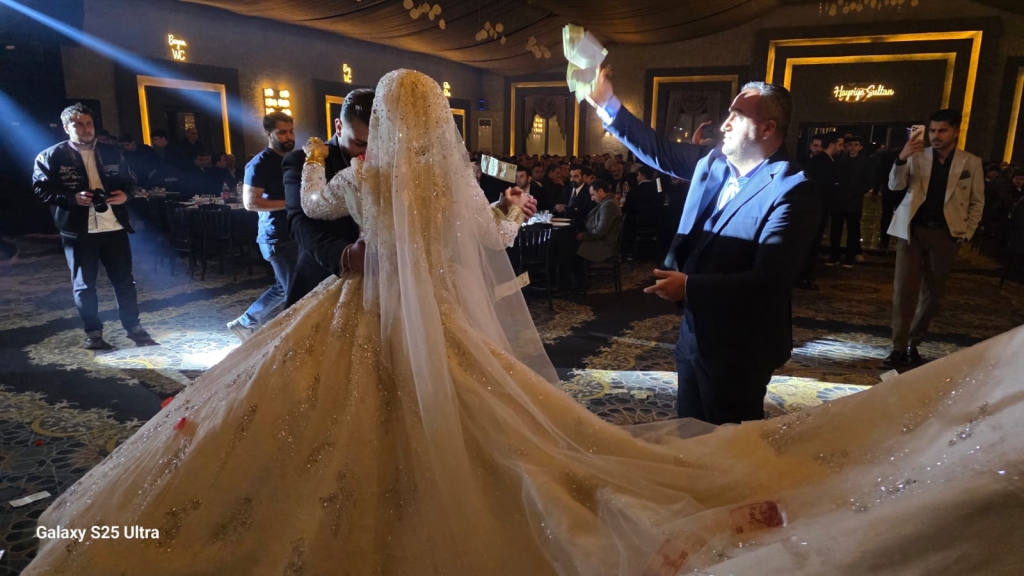 Düğün boyunca birlik, beraberlik ve coşku hâkim olurken, yöresel geleneklerin de yaşatıldığı gecede renkli görüntüler ortaya çıktı.Genç çiftin piste çıkmasıyla birlikte davetliler adeta birbirleriyle yarışarak Türk banknotları attı.