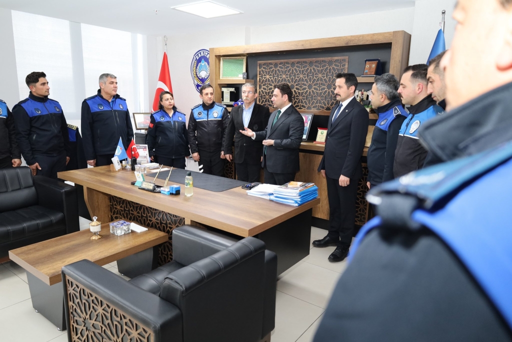 Haliliye Kaymakamı Muhammed Serkan Şahin, Haliliye Belediyesi Zabıta Müdürlüğü’nü ziyaret ederek Zabıta Müdürü Sinan Adıyeke, Belediye Başkan Yardımcısı Mehmet Hamdi Kayısı ve zabıta personeliyle bir araya geldi.