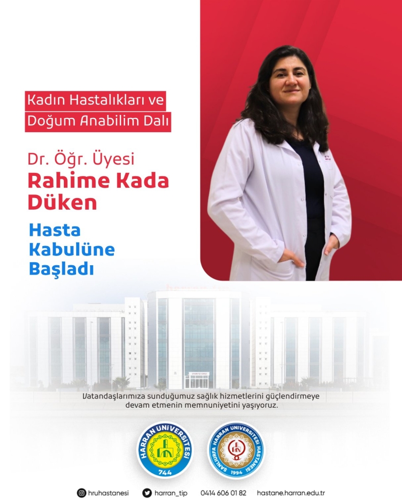 Kadın Hastalıkları ve Doğum Anabilim Dalı’nda göreve başlayan Dr. Öğr. Üyesi Rahime Kada Düken, hasta kabulüne başladı. Alanında uzman olan Düken’in göreve başlamasıyla birlikte, özellikle kadın sağlığı ve doğum hizmetlerinde hastanenin kapasitesinin daha da artması bekleniyor.