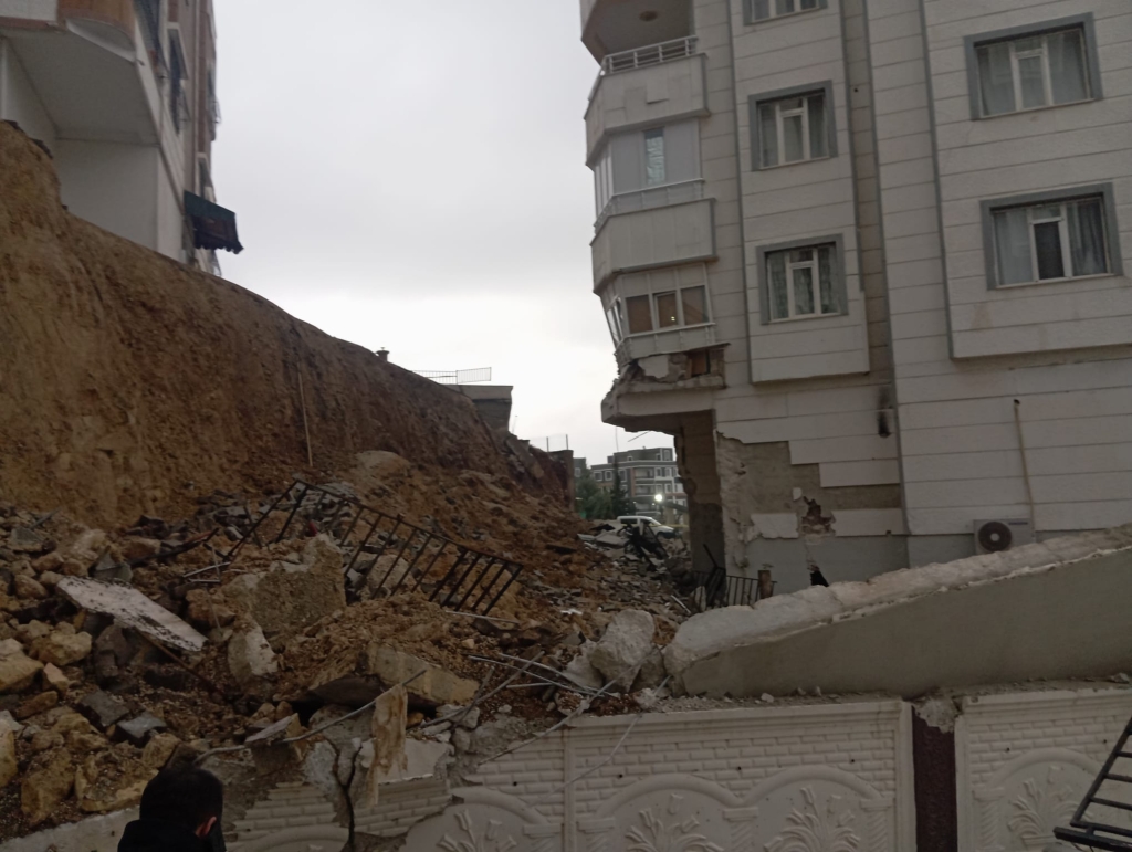 Şanlıurfa’nın Karaköprü ilçesine bağlı Çardaklıkaya Bulvarı’nda istinat duvarının çökmesi sonucu bir binanın 1. katında yıkım meydana geldi. Olayın ardından bina sakinleri, AFAD ekipleri tarafından güvenli şekilde tahliye edildi.
