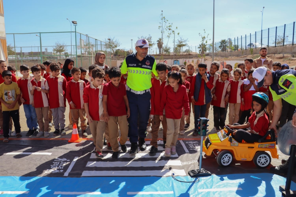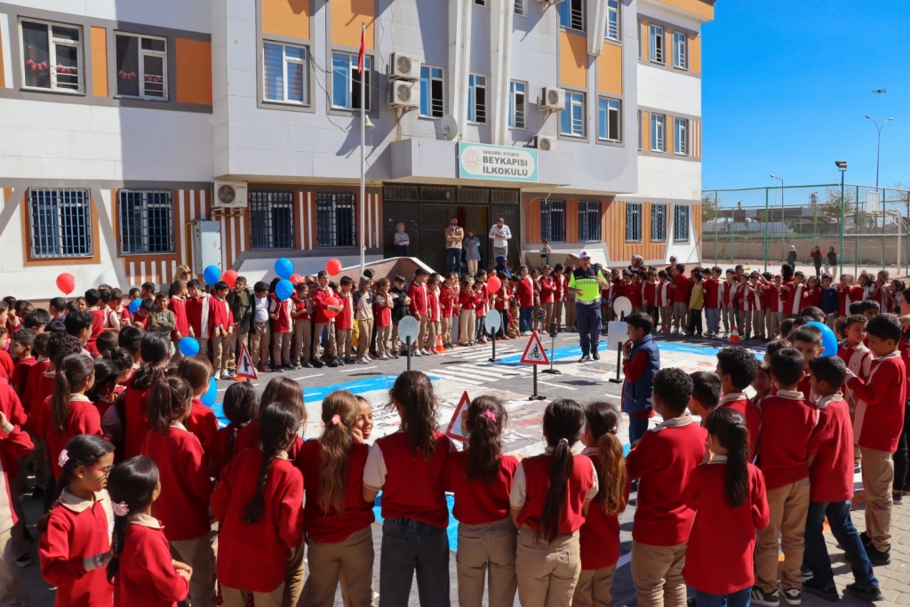 Şanlıurfa İl Jandarma Komutanlığı’na bağlı Trafik Jandarması ekipleri, geleceğin bilinçli bireylerini yetiştirmek amacıyla Eyyübiye ilçesindeki Beykapısı İlkokulu öğrencilerine yönelik trafik eğitimi düzenledi.