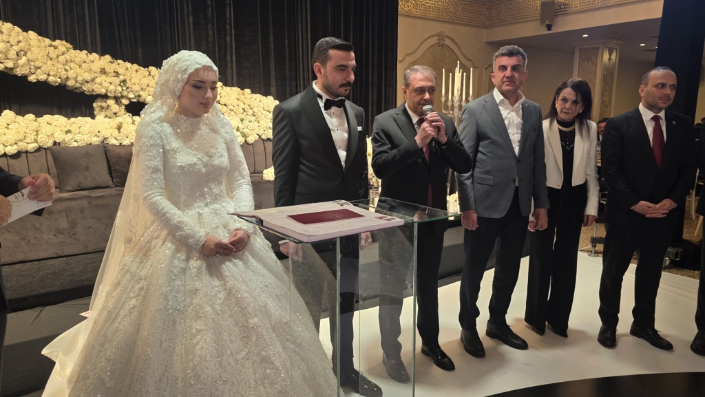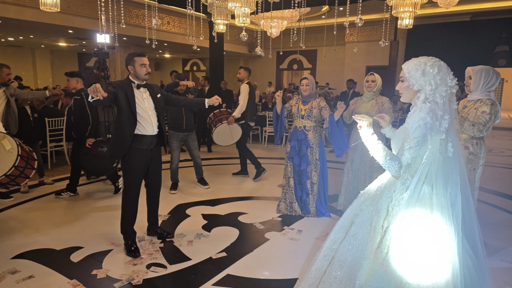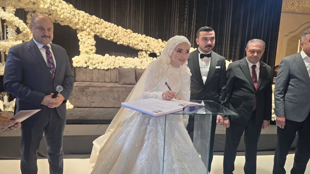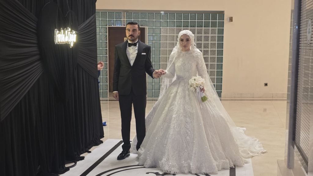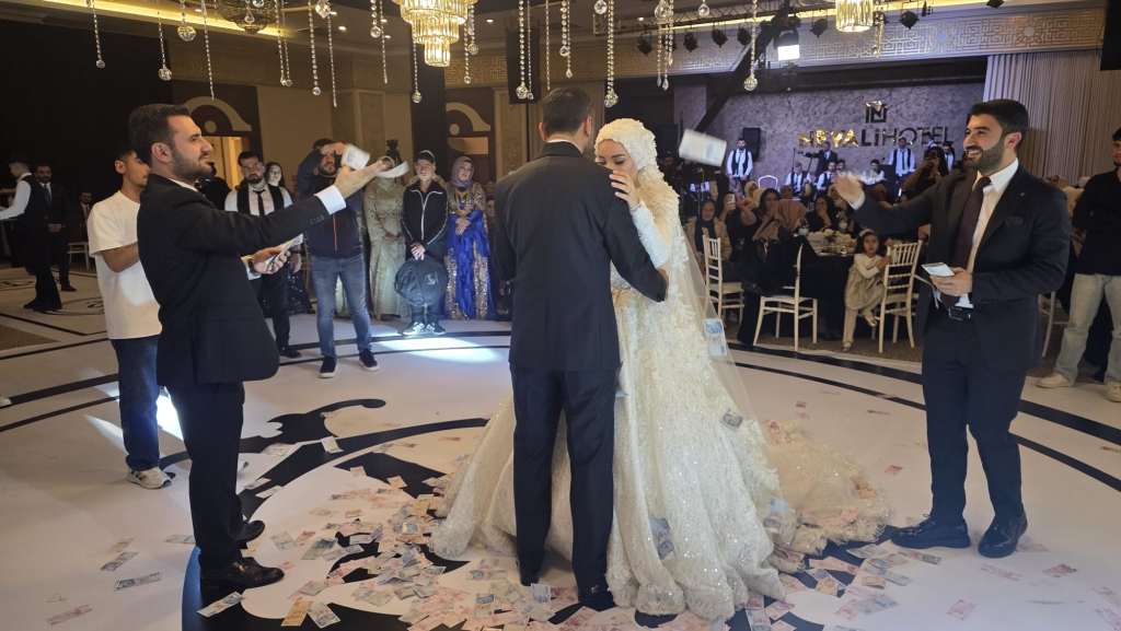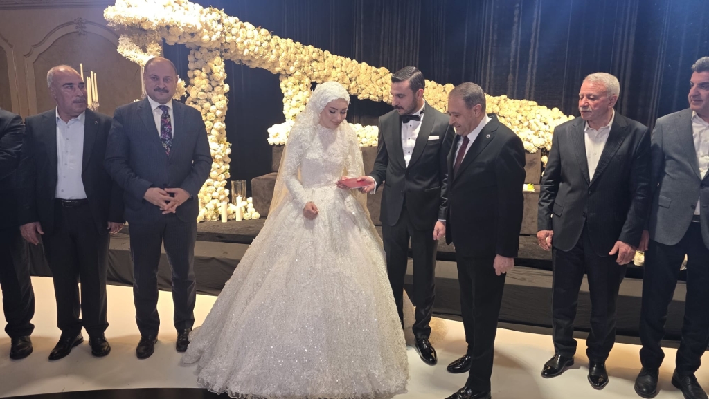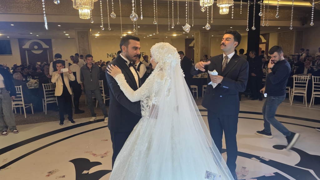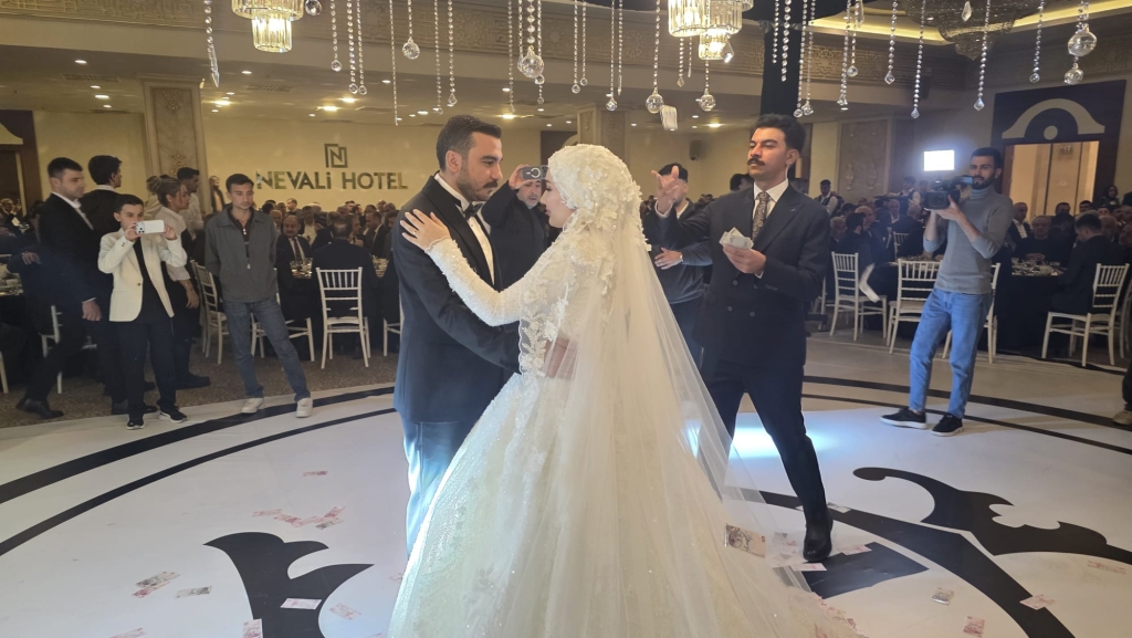 Düğün töreninde genç çiftin salona giriş yaparak piste çıkmasıyla birlikte davetliler büyük bir coşku yaşadı. Halayların çekildiği, müziklerin hiç susmadığı gecede davetliler piste akın etti. Geleneksel olarak Türk banknotlarının atıldığı düğünde salon adeta bayram yerine döndü.