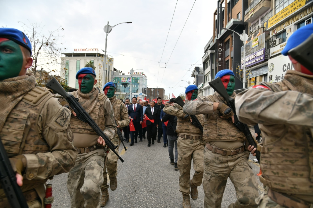 Şanlıurfa’da 11 Nisan kutlamaları kapsamında kortej yürüyüşü gerçekleştirildi. İl Protokolü, Jandarma Mehteran Birliği, Jandarma Merasim Birliği ve çok sayıda vatandaşın katılımıyla Divanyolu Caddesinden Rabia Meydanına kadar coşkulu bir kortej yürüyüşü gerçekleştirildi.